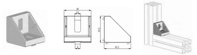 Angolare di fissaggio 42x42 mm. - Montaggio con viti M8X20 (NON fornite) CAVA 8