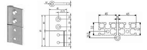 per profili Serie 45 con porta di spessore 32 mm. CAVA 8 |